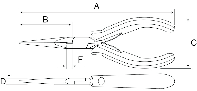 - 兩用型功能,可夾持、抓取以及剪切小零件及軟金屬線的精密工具。