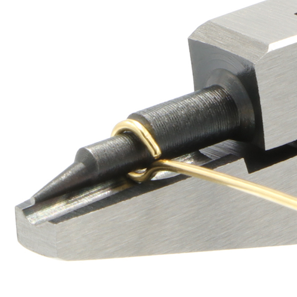 - 用於滾壓軟金屬絲(如黃銅)的工具,只需插入線材即可輕鬆製作 3 種尺寸的圓。
