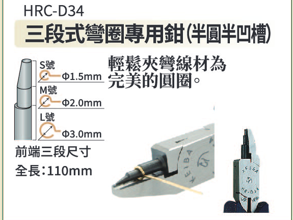 《限量特製色》售完為止KEIBA Pro Hobby 迷你鉗子系列針對精細作業、手工藝愛好者、精密用途所推出的迷你手工具《三段式彎圈專用鉗》
