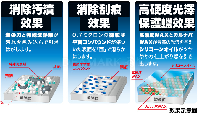 消除污漬效果✨ → 消除刮痕效果✨ → 高硬度光澤保護蠟效果✨