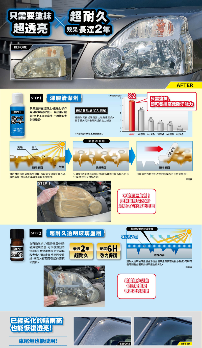 汽車/摩托車的樹脂頭燈殼、尾燈殼、遮陽板的清洗。