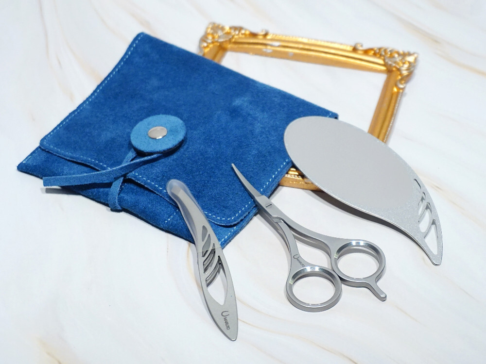 MARUTO 輕巧修眉工具旅行組,日本製修眉剪、眉毛夾、隨身鏡,附真皮收納袋