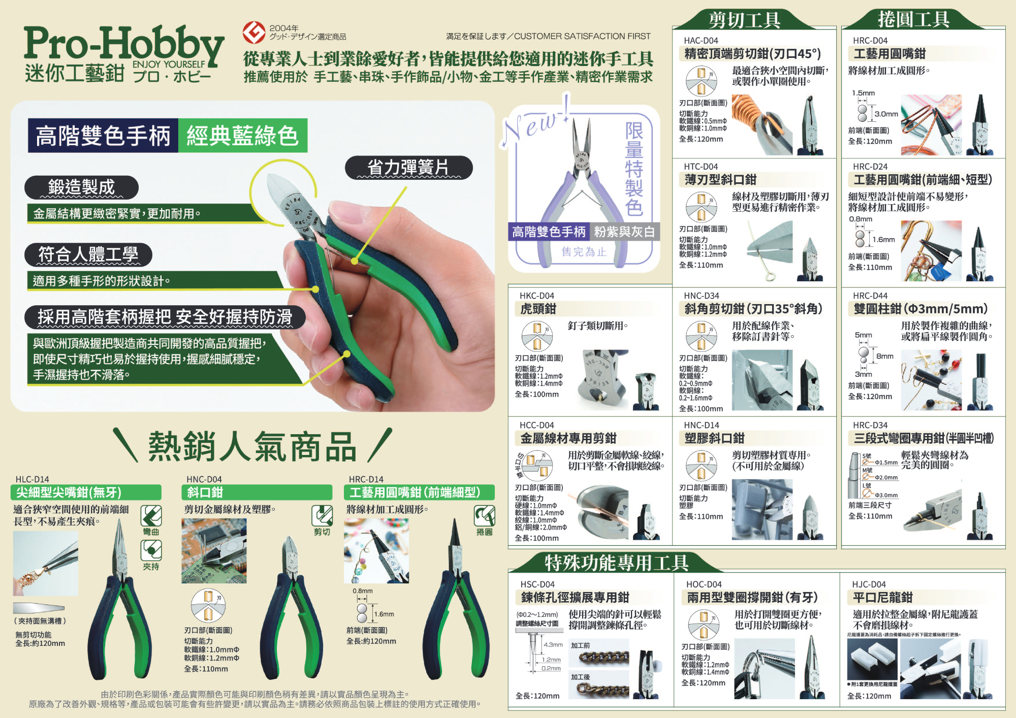《限量特製色》售完為止KEIBA Pro Hobby 迷你鉗子系列針對精細作業、手工藝愛好者、精密用途所推出的迷你手工具《尖嘴鉗》